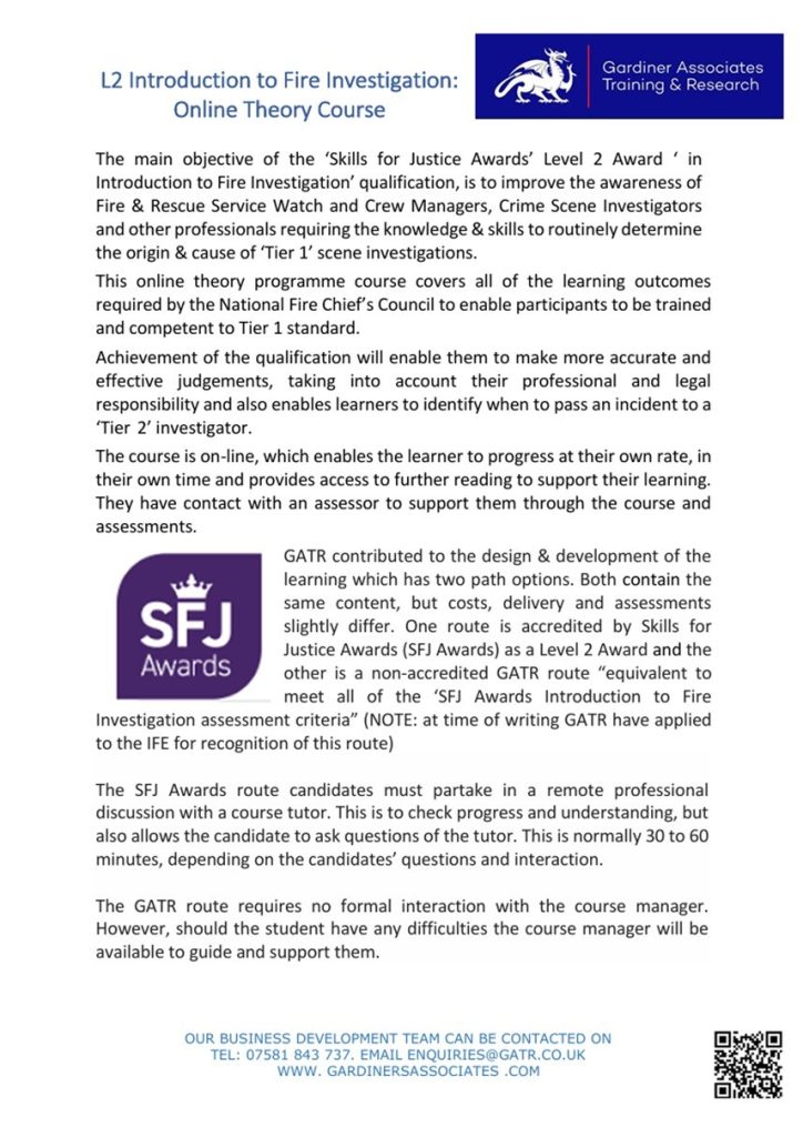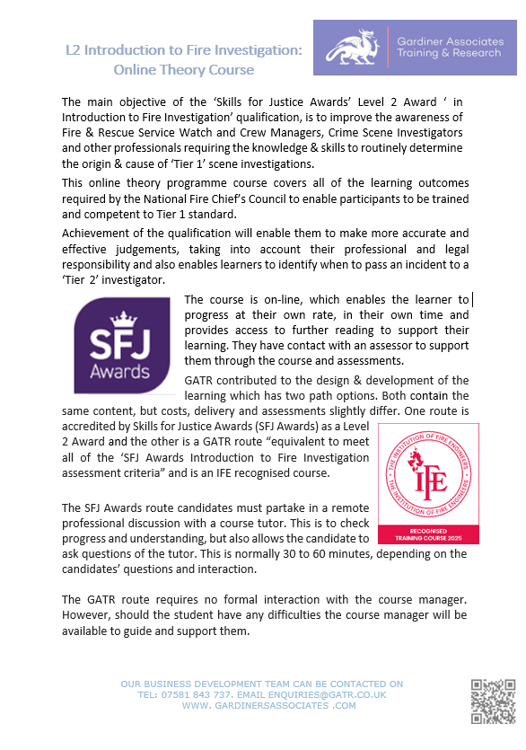 Gardiner Associates Fire Investigation Training & Research • enquiries@gatr.co.uk